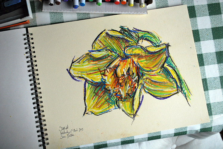 Drawings, Pastels Daffodil #1 Posted by simonbirtall on Mar 6, 2013 Today’s drawing depicts a daffodil in bloom. I drew it in soft pastels on A4ish pastel paper. Still struggling with pastels… Share this: Click to share on X (Opens in new window) X Click to share on Facebook (Opens in new window) Facebook Click to share on Pocket (Opens in new window) Pocket Click to share on Pinterest (Opens in new window) Pinterest Click to email a link to a friend (Opens in new window) Email Click to share on LinkedIn (Opens in new window) LinkedIn Click to share on Reddit (Opens in new window) Reddit Click to share on Tumblr (Opens in new window) Tumblr Like Loading... Related