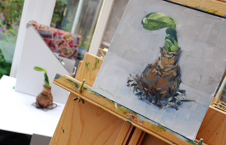 Serendipitously, my mum was kind enough to buy Judith and I an amaryllis bulb yesterday, which once out of its box turned out to be fairly well advanced and looked like it might make a nice subject for a quick study. The resulting painting was completed in around an hour this morning in Winsor & Newton Griffin alkyd paints on an 8” x 8” box canvas, and I’d expect it to be a strong contender for the art fair. If it fails to make the cut it will be let down gently and its exclusion treated with the utmost discretion.